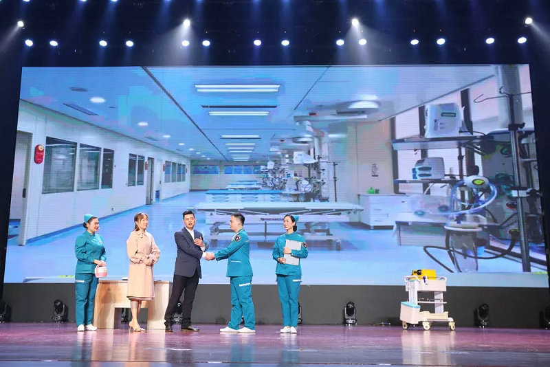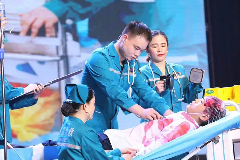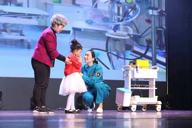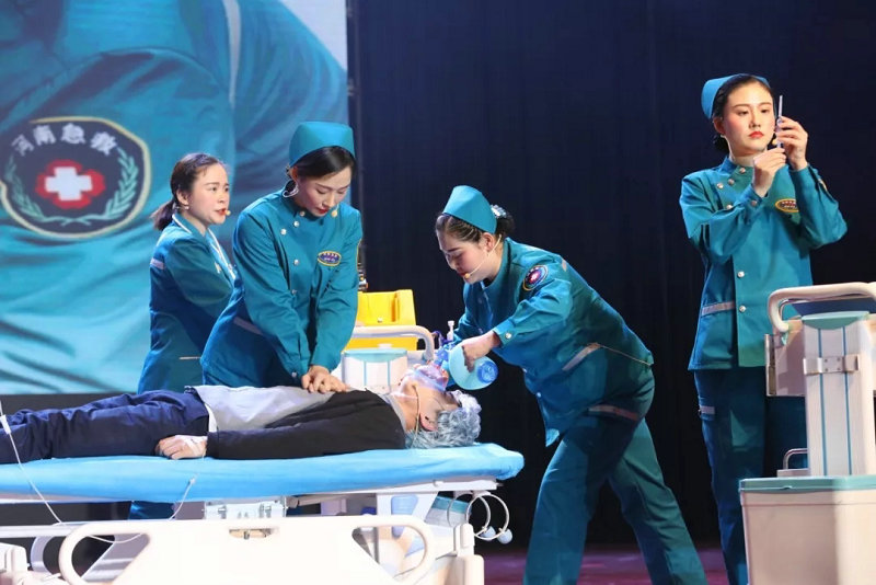 表彰大会后进行了精彩的文艺演出。由郑州大学五附院选送的以真实的临床一线工作故事为背景的情景剧《急诊室的生死时速》将本次演出推向高潮,演员们真实、动情、精彩地呈现了急诊人的工作场景,真诚演绎出医护人员舍小家为大家,虽然辛苦但是面对患者依然无怨无悔自己的选择,情景感人,直击人心,使在场观众不禁落下眼泪,赢得阵阵掌声。