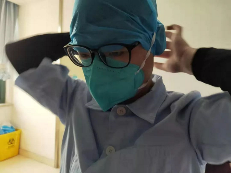 病区住满患者。和值班医生在查房时,有个患者说她的鼻导管没有氧气,我检查后发现其实是她把鼻导管重新戴了,但戴得不规范,所以会折到氧气管,这样氧气气流就变小了。我就把她的口罩取下帮她重新戴,这个过程中患者一直在咳嗽,我们病区的病人是疑似新型冠状病毒感染的病人,在给她带鼻导管的过程中,存在飞沫传播病毒的可能。战友也提醒我小心点,但是我想:在做好防护的前提下,要尽己所能先考虑病人的需求。
