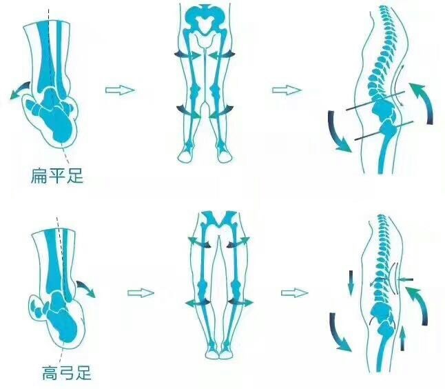 正所谓“上梁不正下梁歪”。足部的结构异常会导致脊柱侧弯和生理曲度异常,同样脊柱的结构异常会导致双下肢负重失衡,加重足部肌肉骨骼的损伤。另外足脊结构异常(病症)通过运动链,渐进性或劳损性影响人的运动系统,从而继发各种的运动损伤。运动能力的下降或丢失直接影响人的心肺功能、循环系统、泌尿系统、神经系统、肌骨系统等。