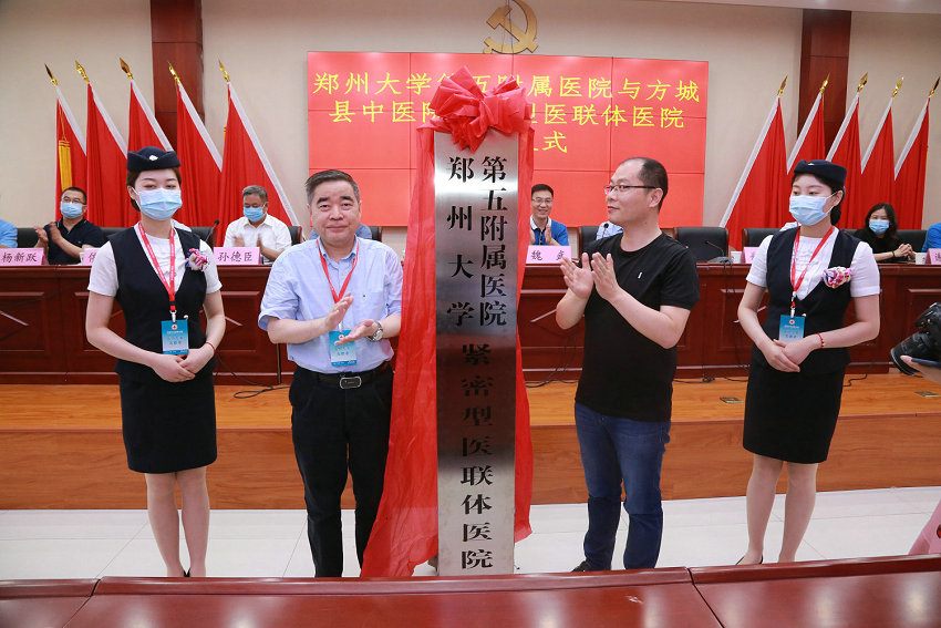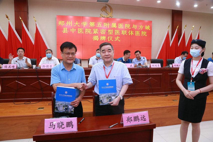 随后,郑州大学五附院和方城县中医院签订紧密型医联体协作协议,并进行授牌,方城县中医院成为郑州大学五附院紧密型医联体成员单位。