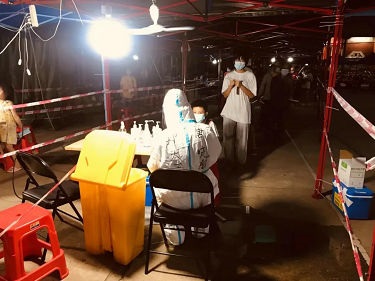 ▲ 在海口市多个核酸采样点,都能够见到医疗队队员们奋战的身影