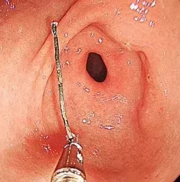 经过与消化内镜中心郑权主任讨论过后,又向家属再次仔细询问了病情以后,于主任认为这是一个近期发生的病变,于是果断的使用内镜下异物钳将其拔出!钉子出来的一瞬间大家一颗心都提到了嗓子眼上。