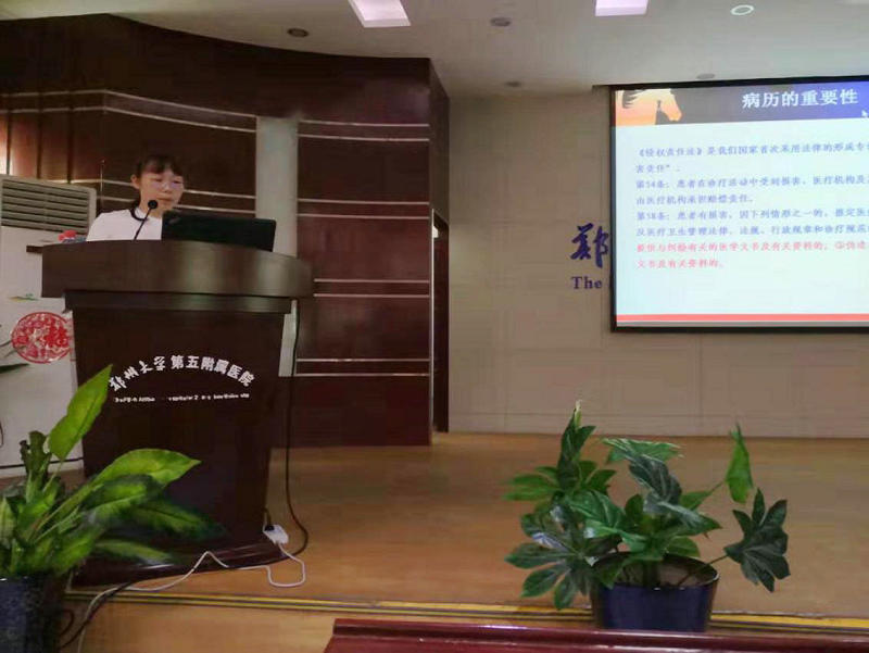 ▲ 医务科王琰副科长讲授《医疗法规与制度培训》